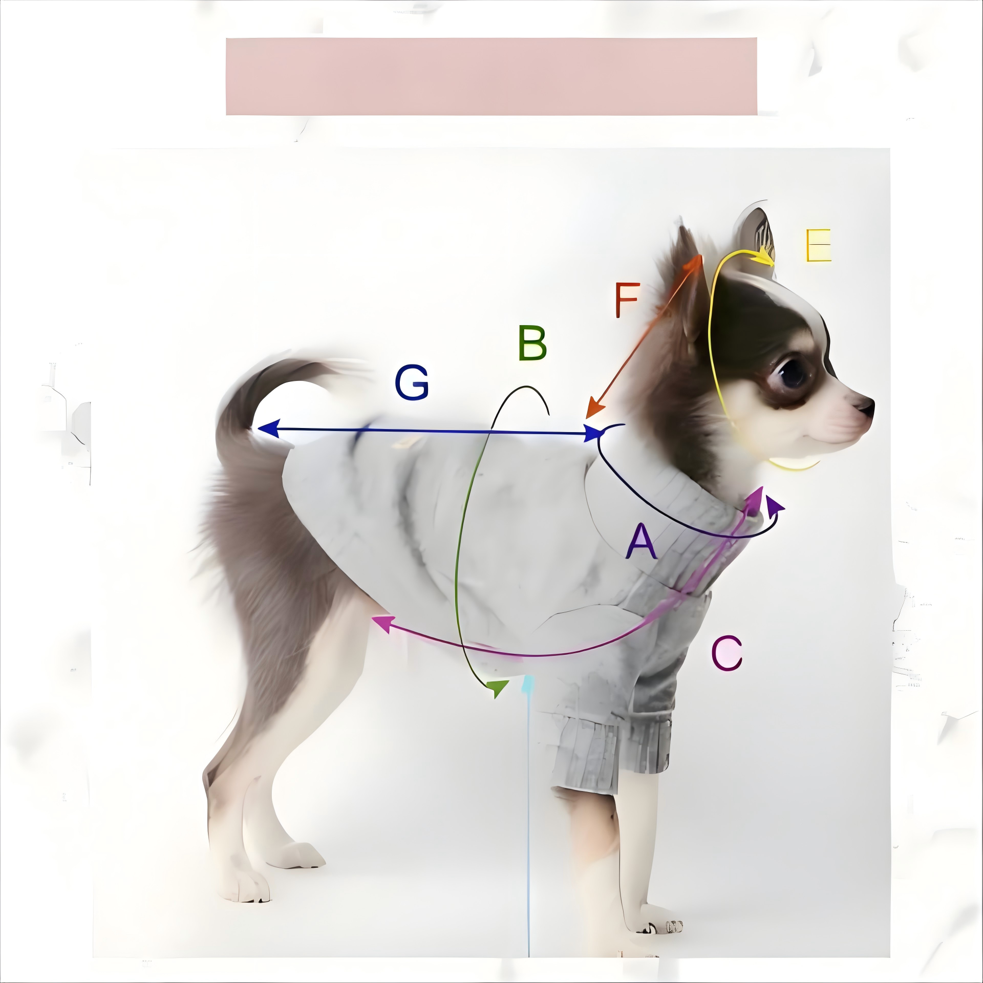 Back Length (G): Measure in a straight line along the spine from the base of the neck (where the collar sits) to the base of the tail. Keep the pet in a natural standing position, and ensure the tape is snug against the body without overstretching.